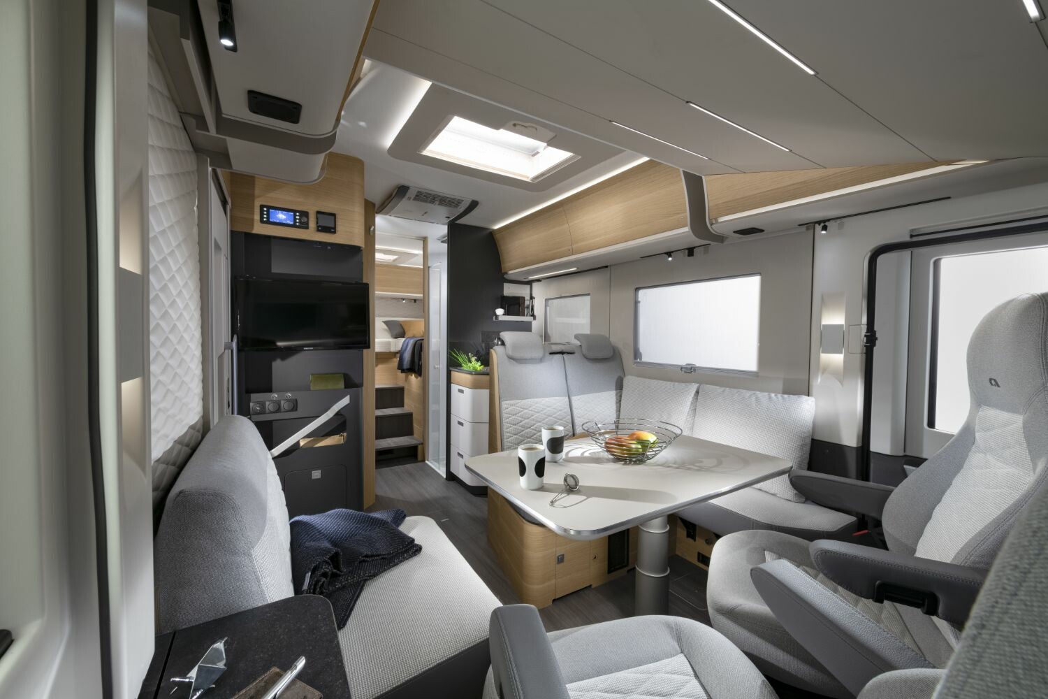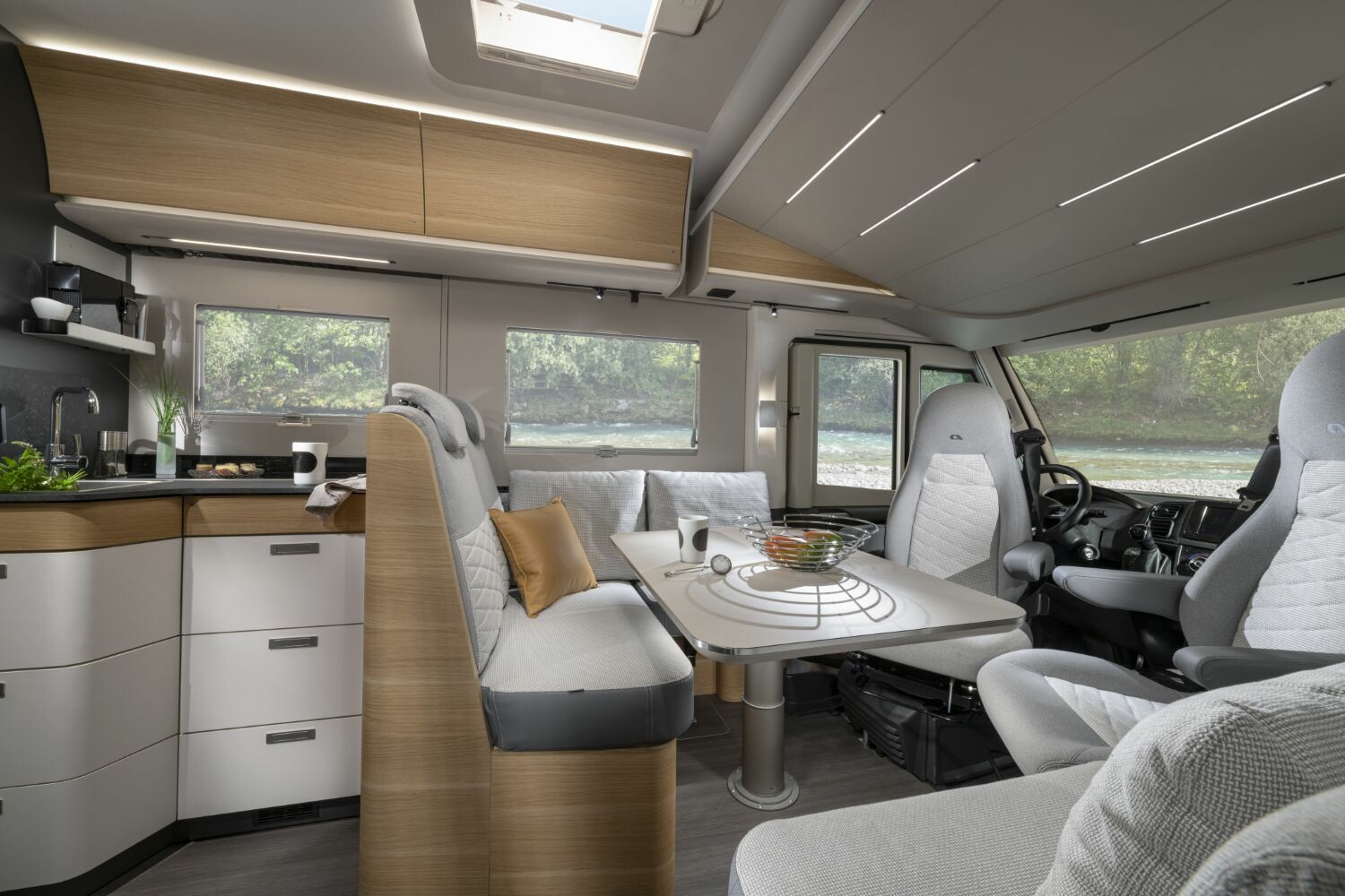 Eleganten avtomobilski slog in sodobna notranjost z možnostjo izbire različnih slogov pohištva in blaga, kjer pri udobju ni kompromisov in se obnese čez celo leto.