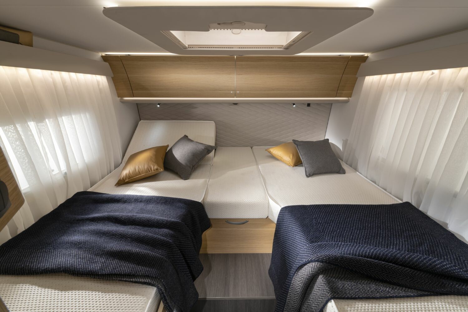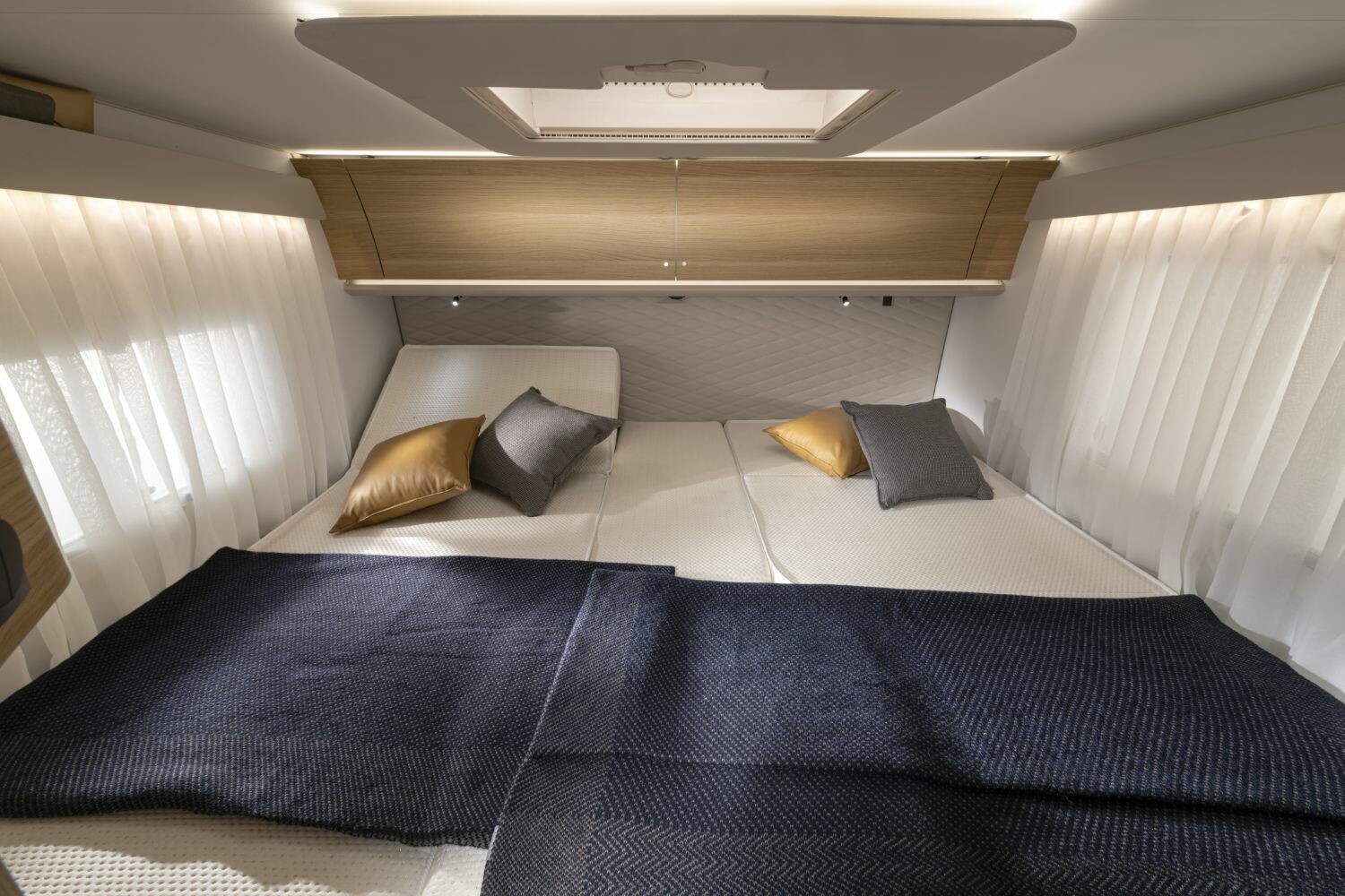 - Popolnoma integrirana dvižna postelja nad bivalnim delom
