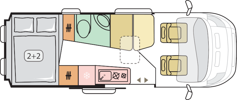 Vozilo nudi udobno spanje in bivanje 4 osebam. Prav tako nudi udobno vožnjo in zaradi aerodinamične zunanje oblike tudi manjšo porabo.