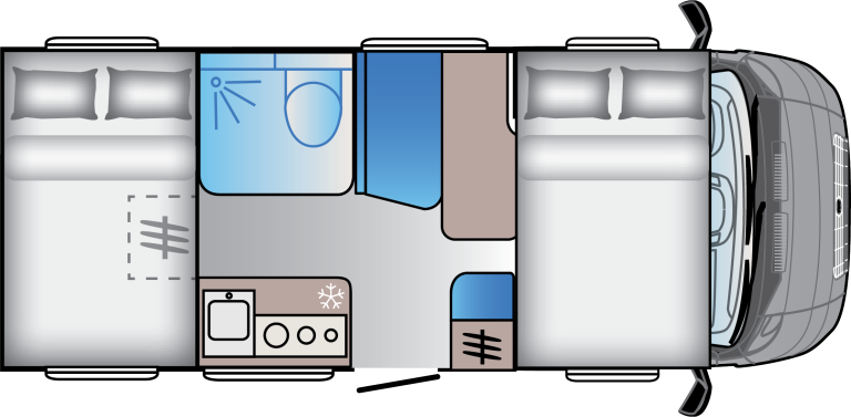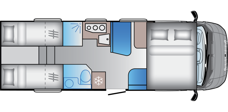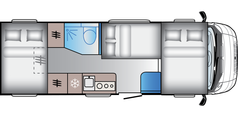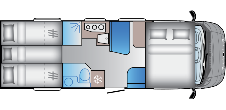 Družini prijazen avtodom. Uživajte v prijetnem vzdušju uporabno zasnovane notranjosti, ki omogoča maksimalno udobje. Dobro premišljene tlorisne različice in priročne funkcije združujejo velik prostor s pametnimi rešitvami … tako lahko svobodno in sproščeno uživate od trenutka, ko zapeljete na cesto, kot tudi vsako sekundo, ki jo preživite v notranjosti.