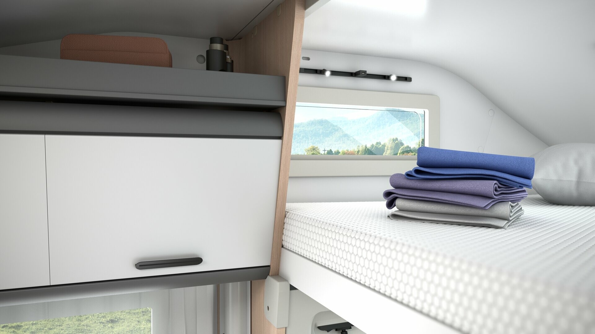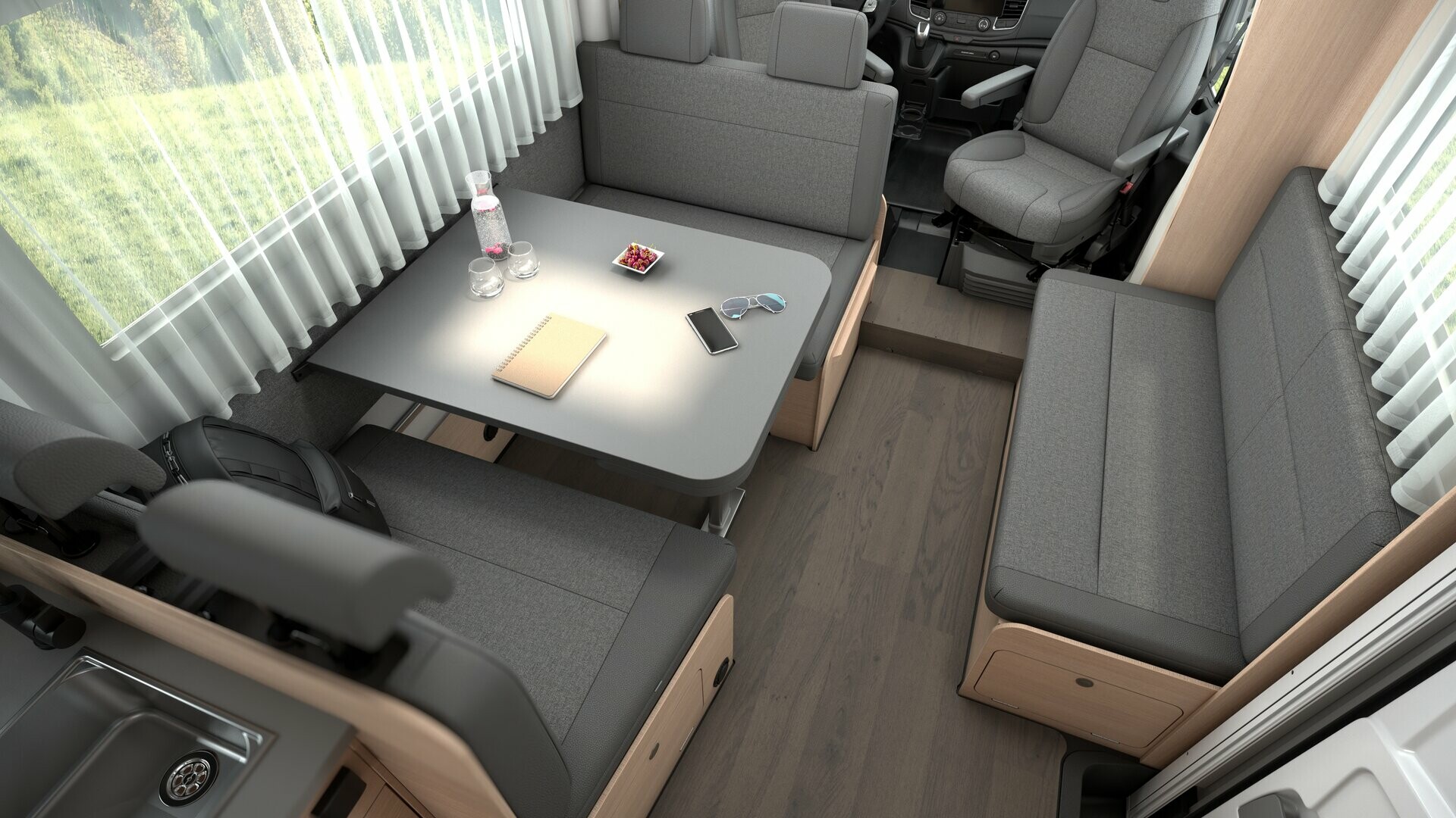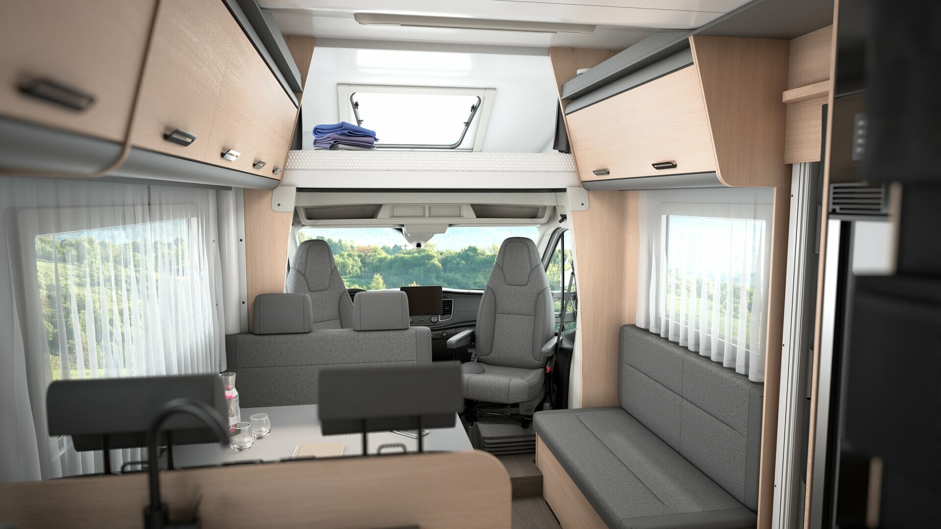 Družini prijazen avtodom. Uživajte v prijetnem vzdušju uporabno zasnovane notranjosti, ki omogoča maksimalno udobje. Dobro premišljene tlorisne različice in priročne funkcije združujejo velik prostor s pametnimi rešitvami … tako lahko svobodno in sproščeno uživate od trenutka, ko zapeljete na cesto, kot tudi vsako sekundo, ki jo preživite v notranjosti.
