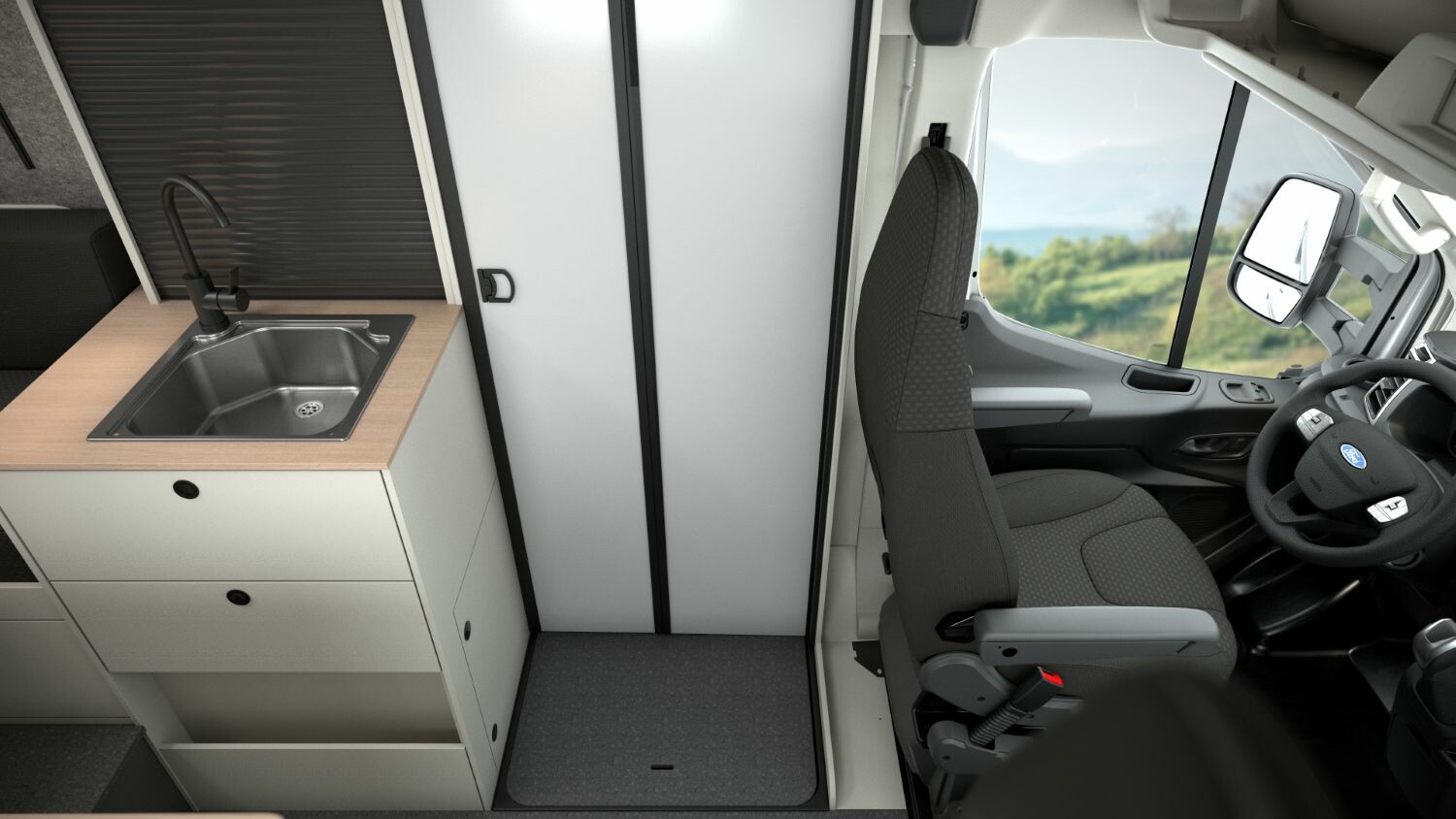 - Izbira Ford Transit motorjev z 130 KM ali 165 KM ter 6- ali 9-stopenjskim menjalnikom (ročni ali automatski)