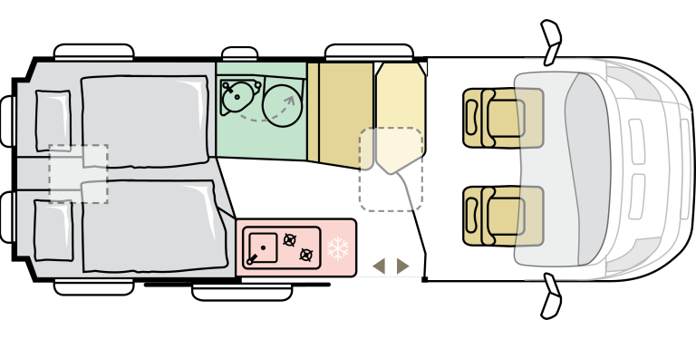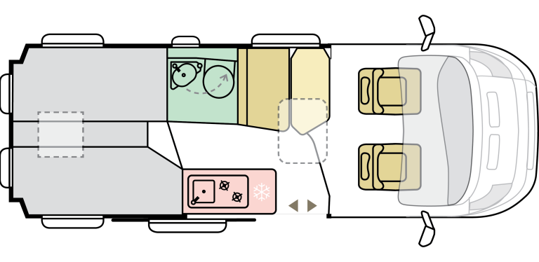 - Optimizirano upravljanje temperature z ogrevanjem Truma plin (standard) ali Truma Dizel (opcijsko)