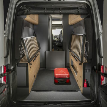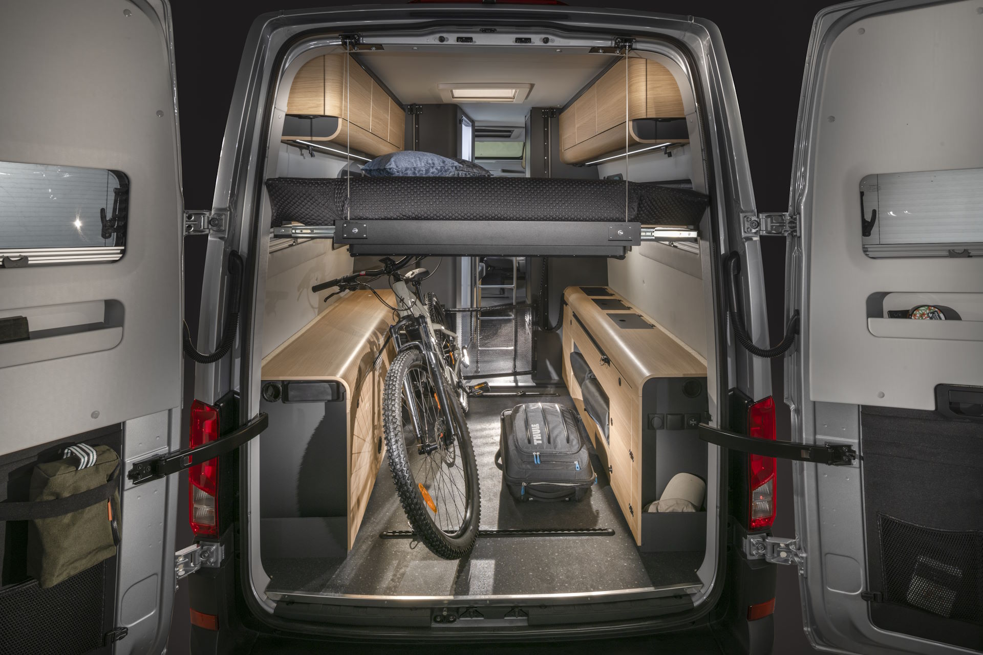 Vani za kampiranje Twin Max imajo našo novo odprto notranjost in vrhunsko raven udobja; v njih je več prostora kot v običajnih vanih za kampiranje.